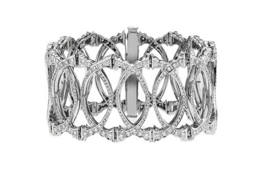 - Platinum bracelet with 100 sapphire beads (178 carats) and round diamonds (3.51 carats)